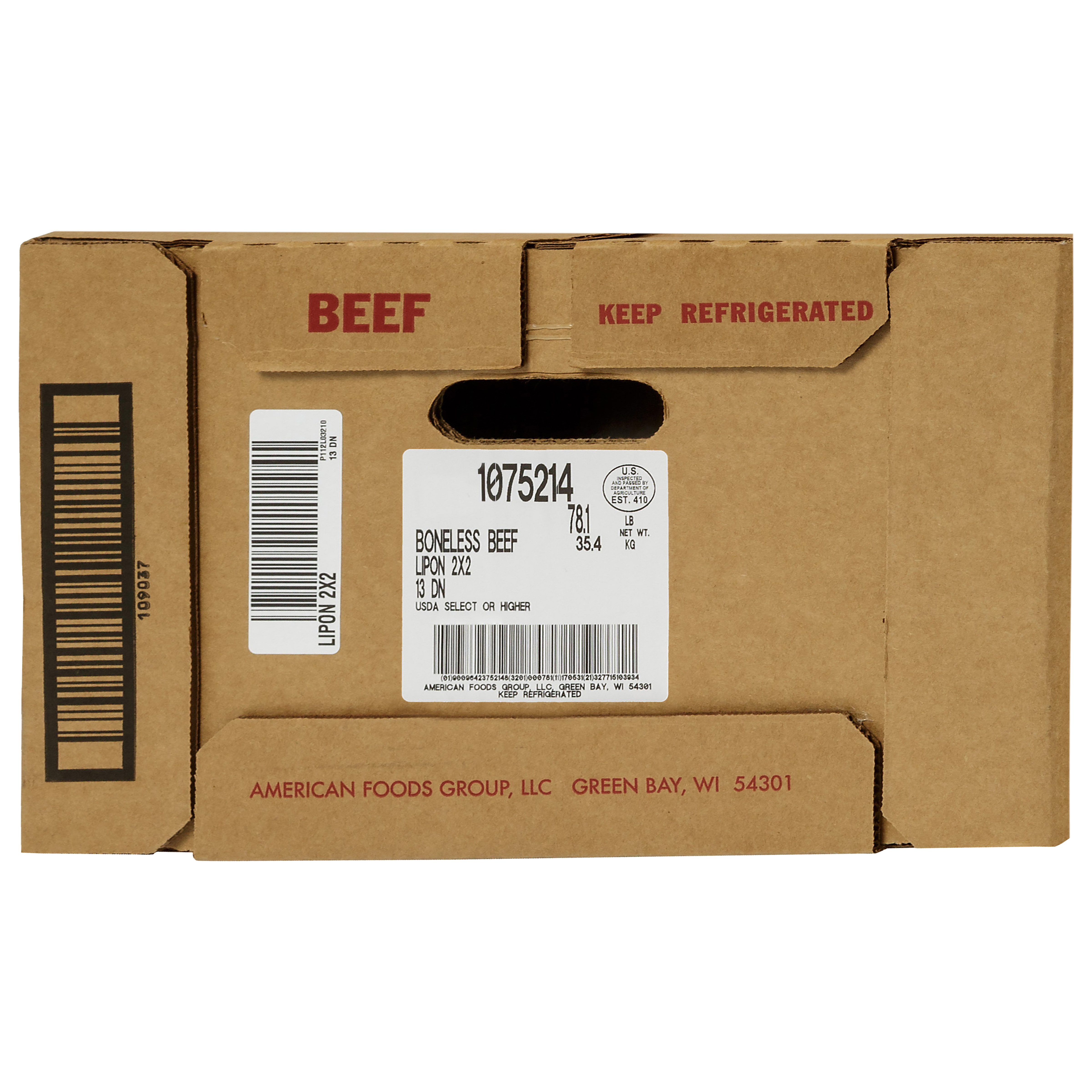 DESCRIPTION – The American Foods Group Boneless Beef Ribeye Lipon is 100% Select Grade beef and contains no additives.