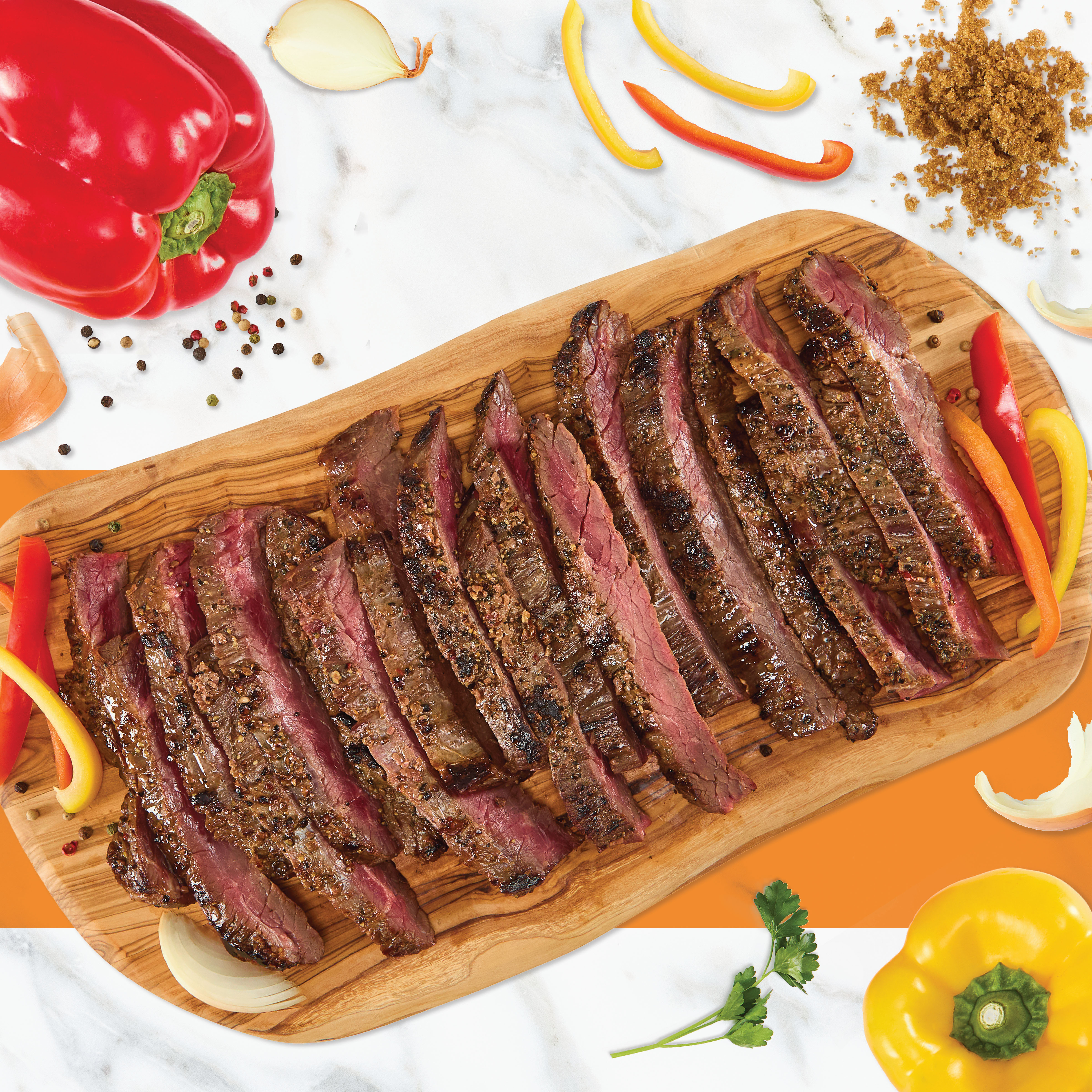 DESCRIPTION – Smokey Hibachi captures the Japanese hibachi-style cooking infused with charred smokiness. The flavors consist of a smokey depth, savory umami, and subtle sweetness. Skirt steaks absorb sauces exceptionally well, infusing vibrant flavors into every bite. This cut of beef can be quickly grilled or sautéed.