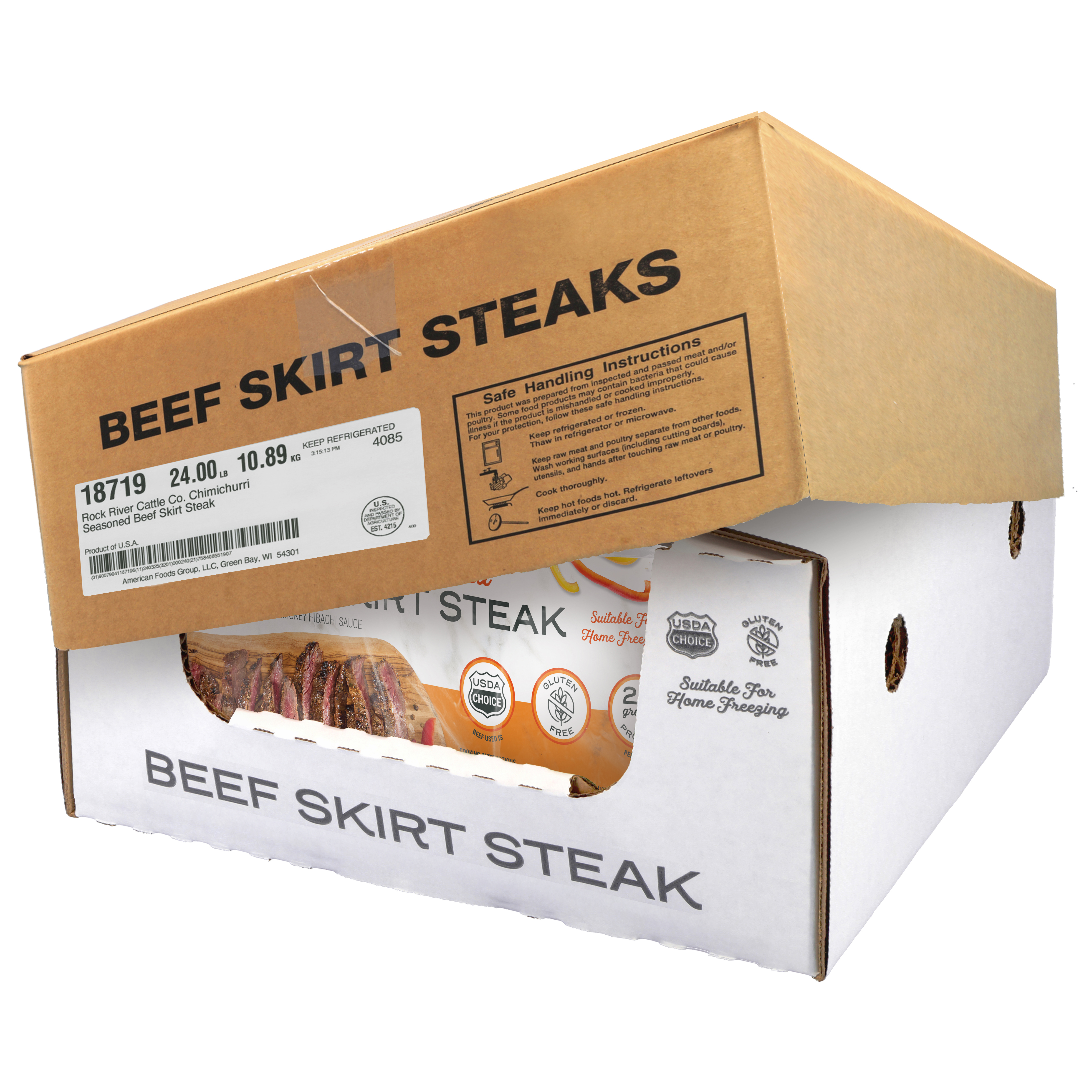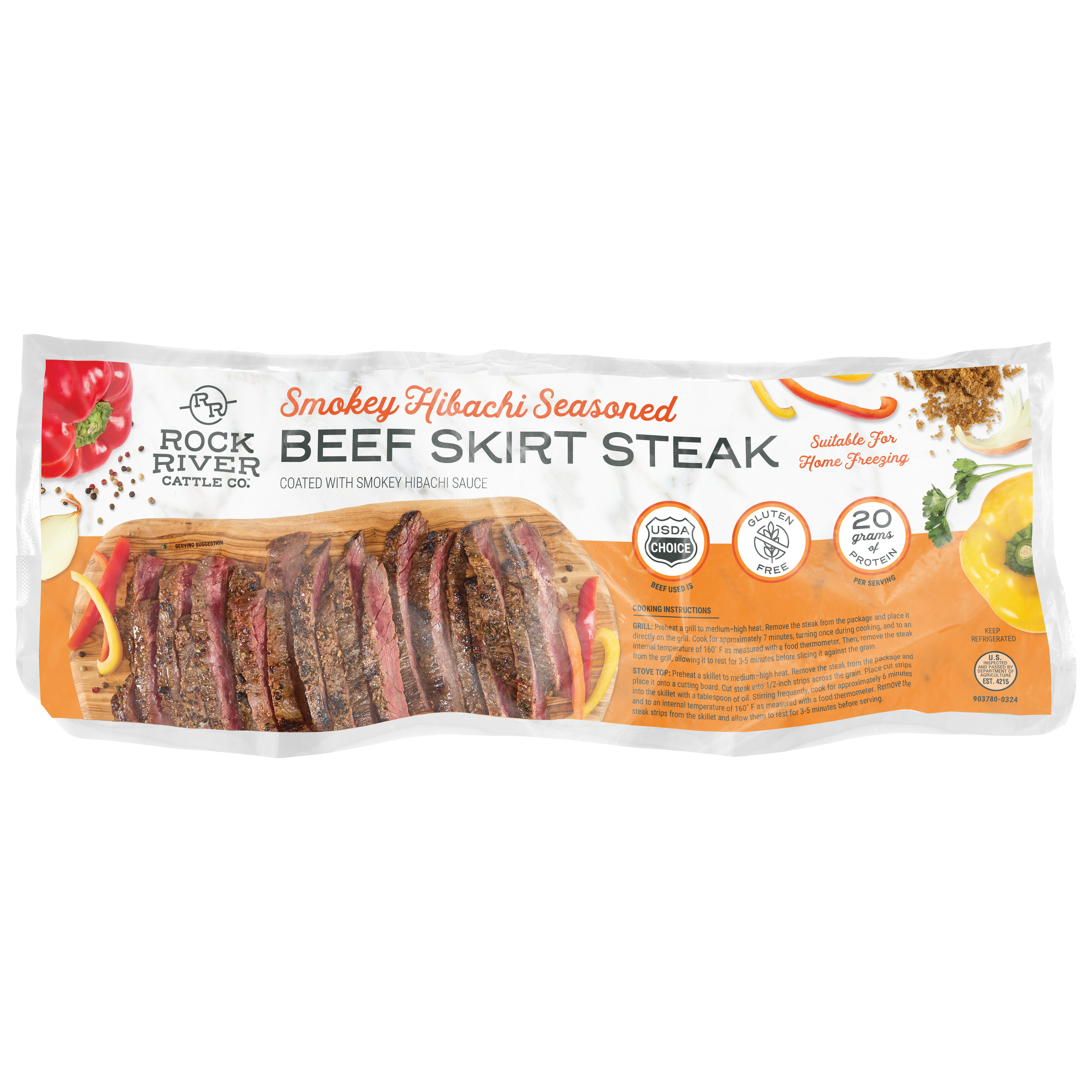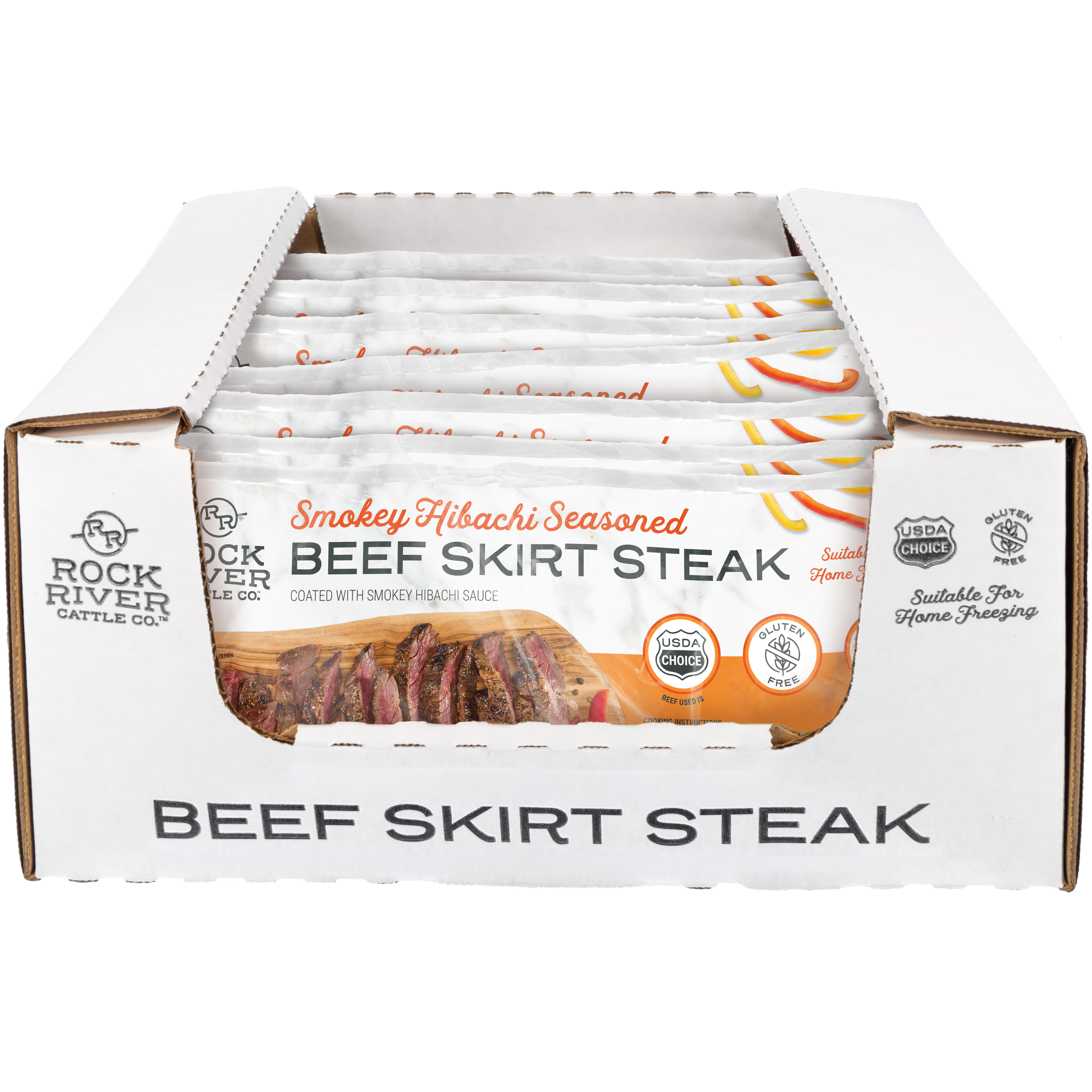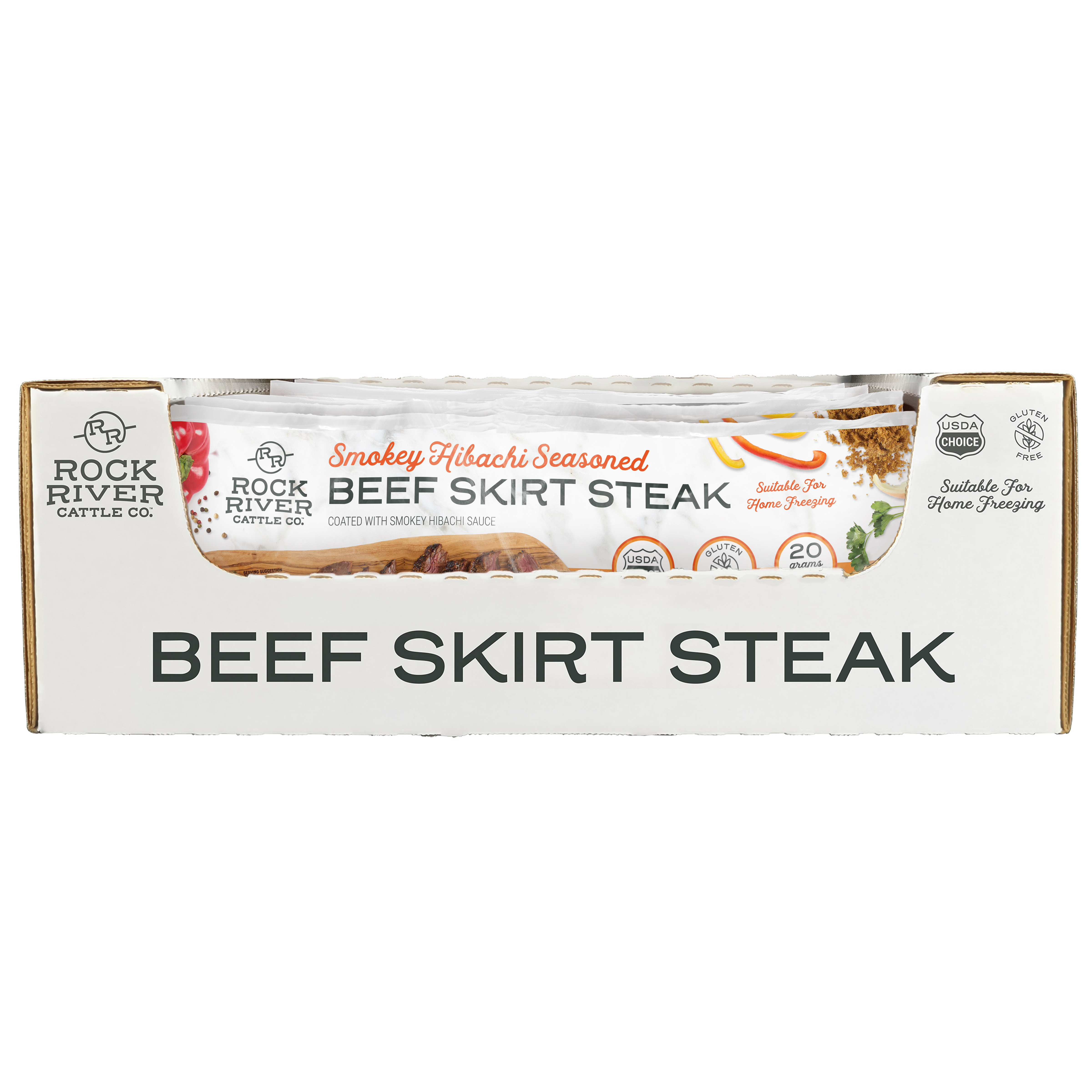 Rock River Fresh Smokey Hibachi Seasoned Beef Skirt Steak, 9-2.31 Pound Average Packages Per 21 Pound Average Weight Master Case, 1-32 Ounce Average Steak Per Package