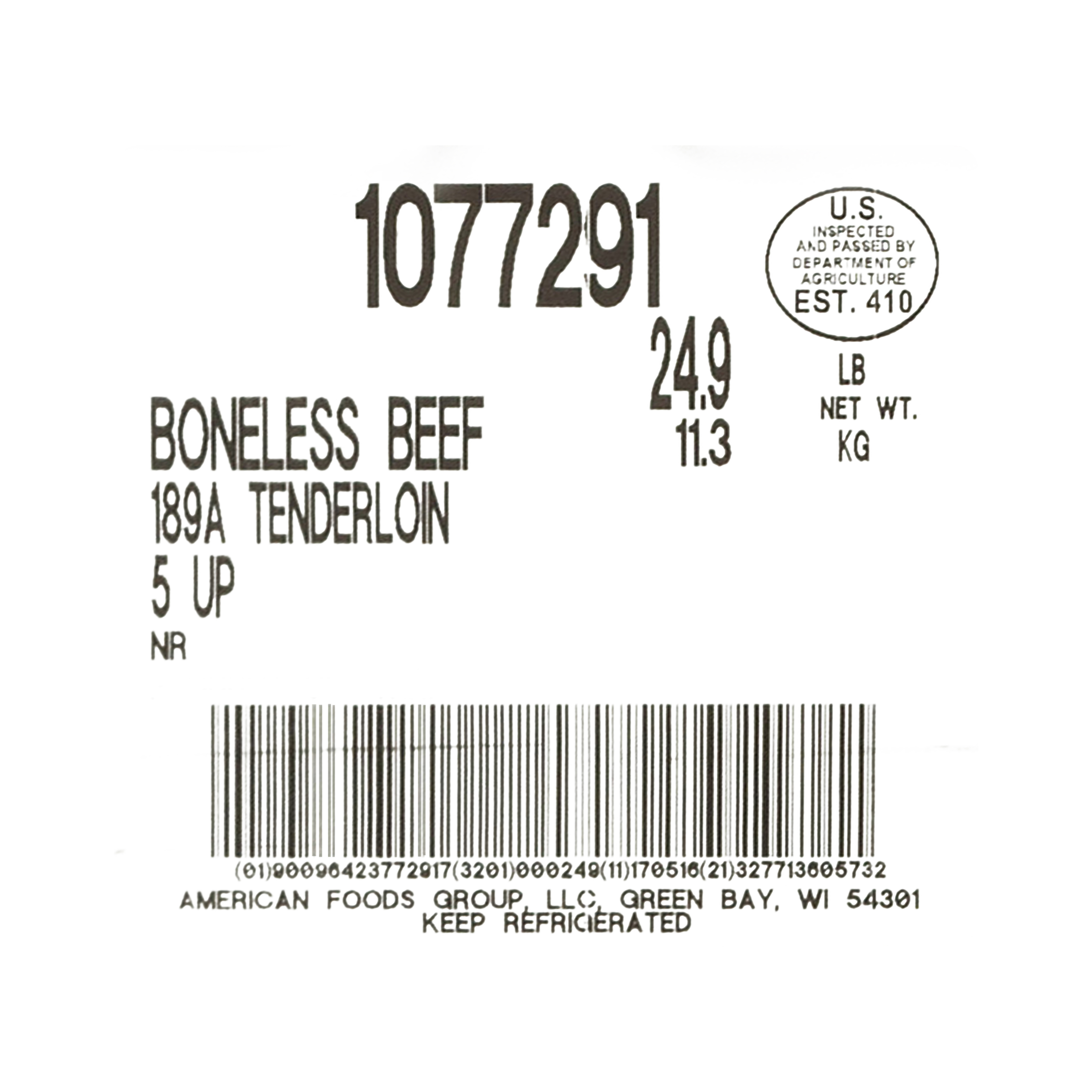 DESCRIPTION – The American Foods Group Boneless Beef 189A Tenderloin is 100% No Roll Grade beef and contains no additives.