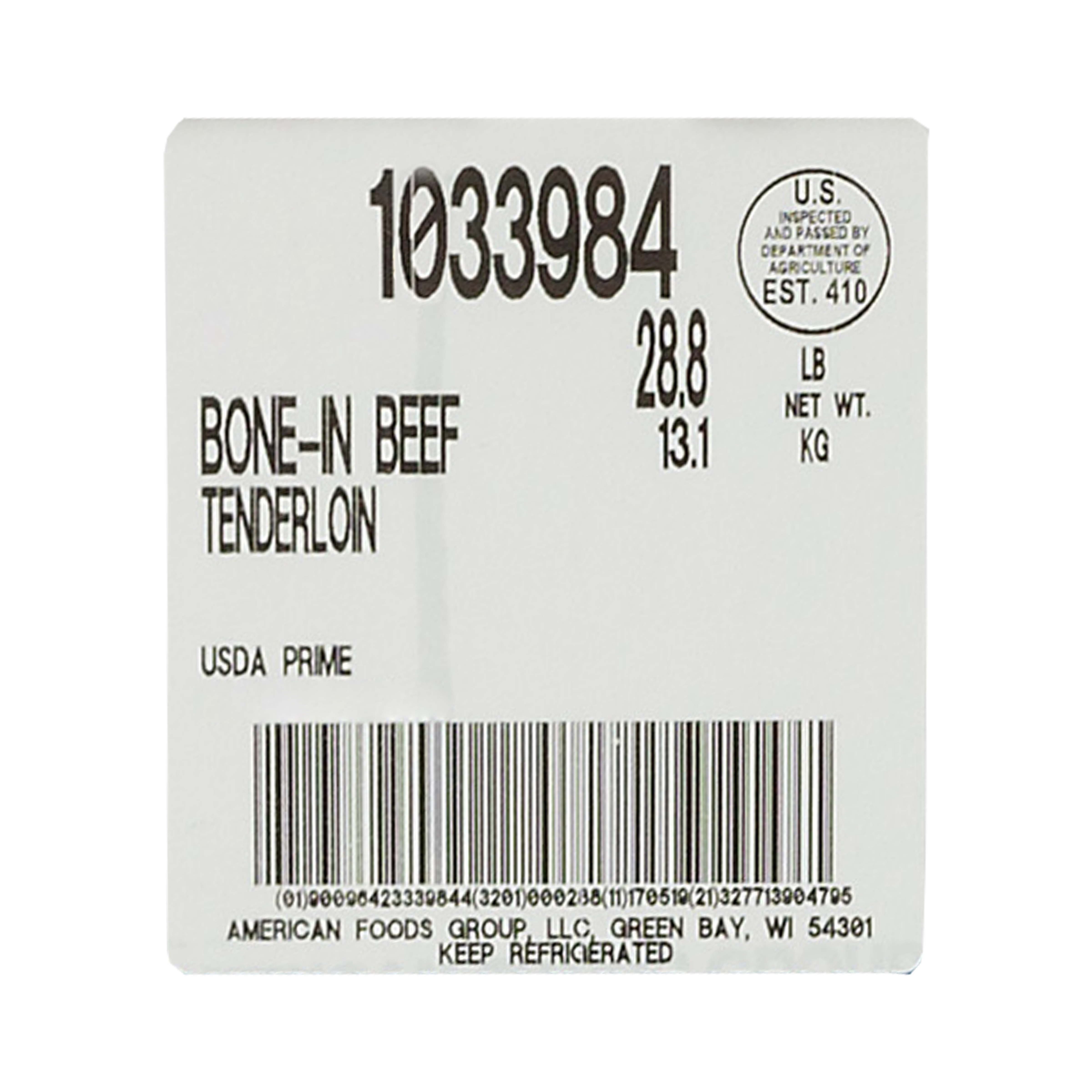 DESCRIPTION – The America's Heartland Bone In Beef Tenderloin is 100% Prime Grade beef and contains no additives.