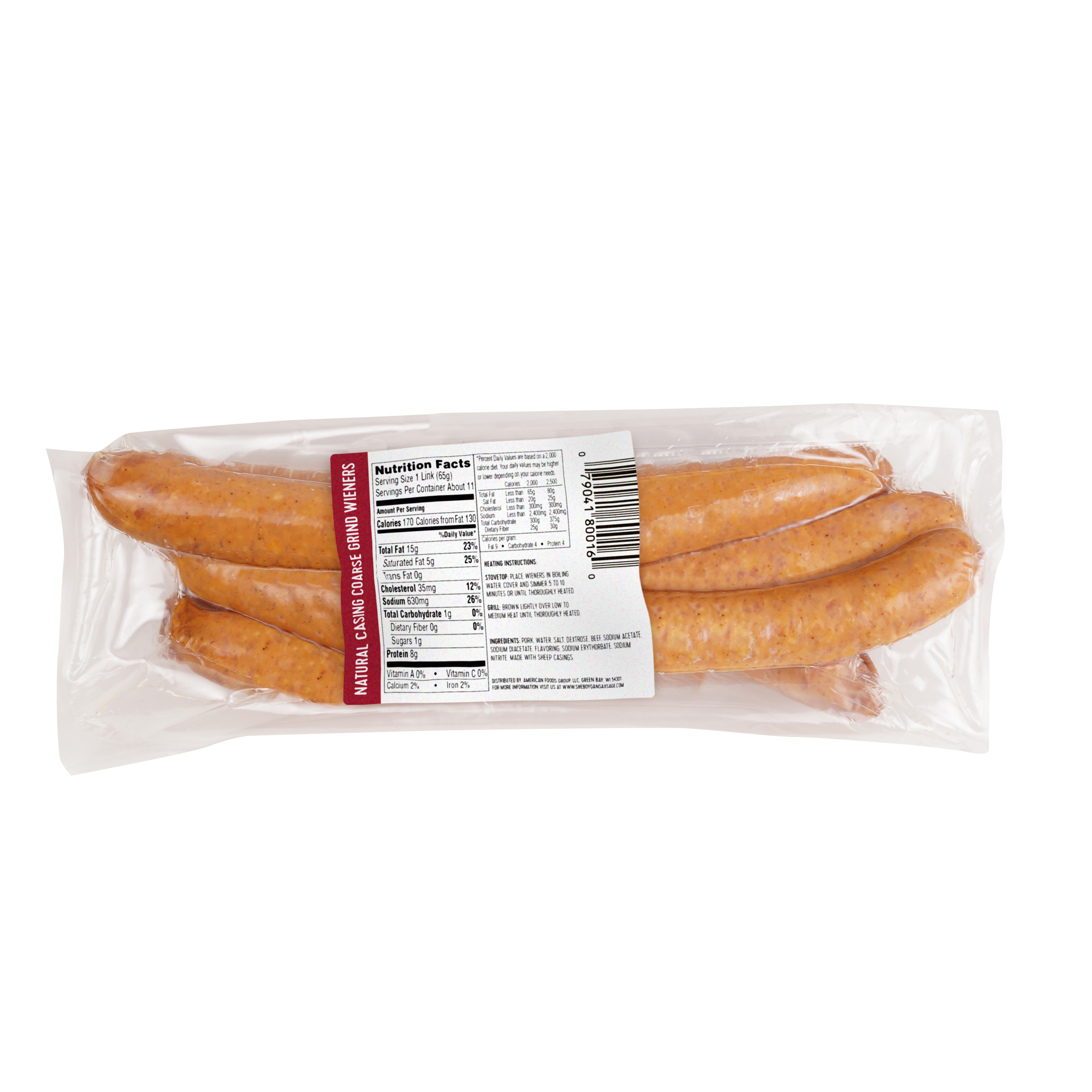 Fully Cooked Natural Casing Coarse Grind Wieners 7:1 6/1.25# Packages