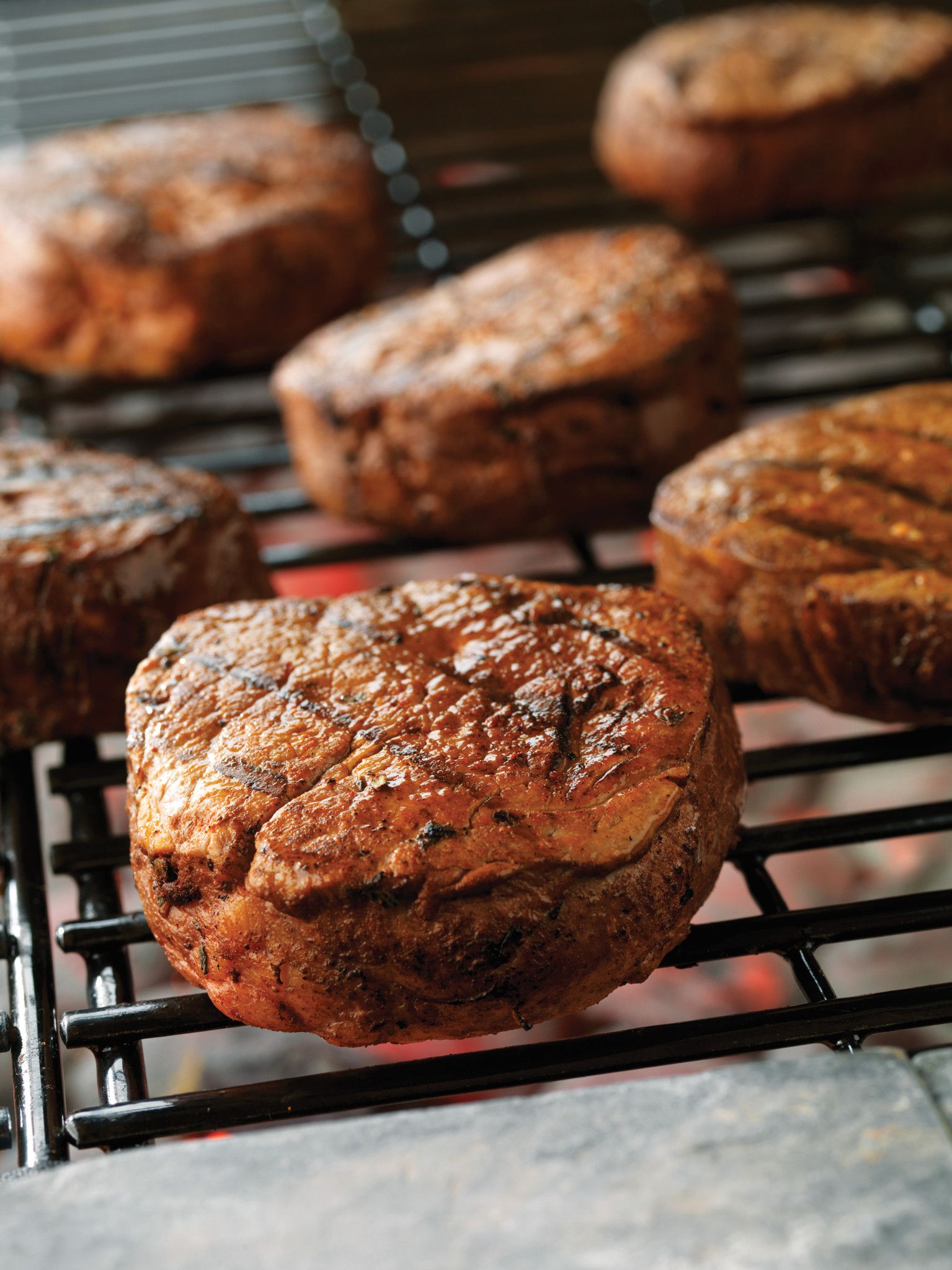 - Place steaks on grid over medium, ash-covered coals or over medium heat on preheated gas grill. Grill according to the chart for medium rare (145°F) to medium (160°F) doneness, turning occasionally.