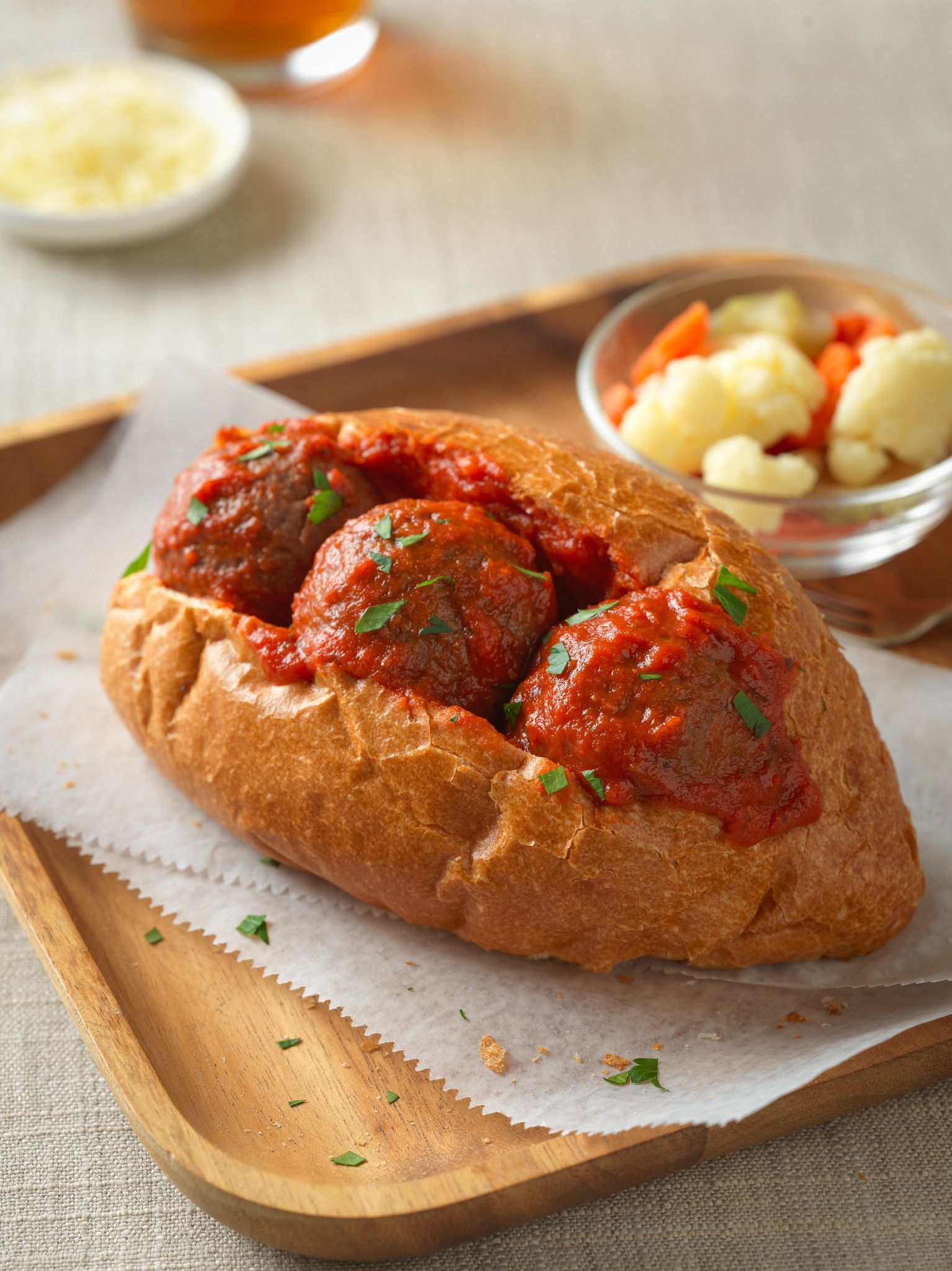 Zesty Italian-style meatballs are tossed with pepper and onions in a tomato sauce and served in a hoagie roll. This sandwich is perfect for game day or dinner any night of the week.